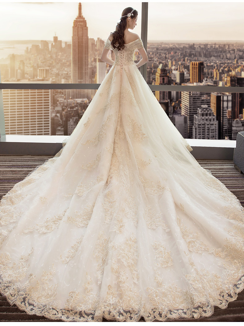 シャンパンのウェディングドレスは高贵で上品な仕上げの店に8つのアクセサリーをプレゼントしました。楽しいショッピング体験をしました。