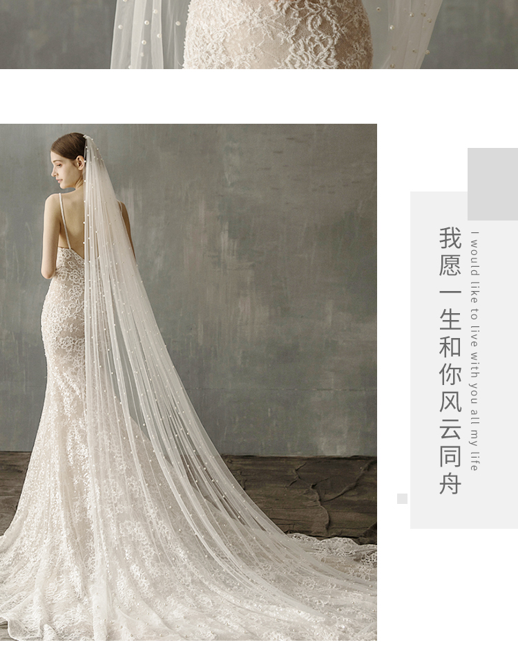 新婦の頭紗ふわわわ結婚ネトート有名人の撮影道具ナチュラの白いウェディングベールローリングリングドレイン真珠の頭紗長230*幅150 cm以上