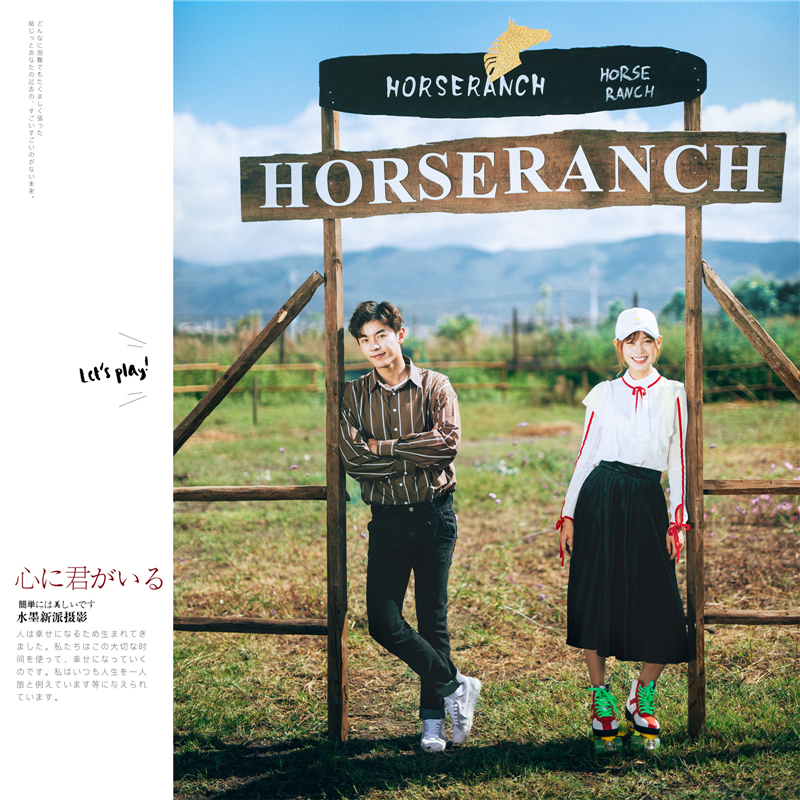 TIKTOK同じスタイカスタム2019展示会新款影楼テ-マ服装ノンフィクション旅撮影ロケナチャ-ラカップル写真撮影ウェルディードレス男女セット