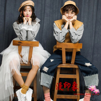 TIKTOK同じスタイカスタムTIKTOK同じスタイビル新型文芸风秋冬型セーターカップルテ-マ撮影服ロケーション街撮影旅撮影カップルセット写真楼平均サイズ