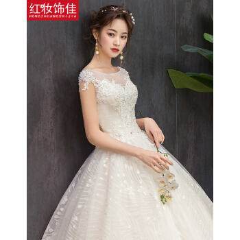 Hongzhuang星空の主なウェディングベール2020新款新婦のスラムの丸首のウェディングドレスの女性シンプルロングーわわわわわわスカート春夏のピクチャーカラー【精致な刺繍スカートのSサイズ】