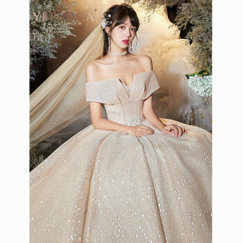 YELLOCA Net有有名人TIKTOK軽豪华ドレンチウェディングドレス2019新型新妇ふわわわ梦幻オフスタンスーパースタースタースター星空ドレスアップモデルオーダーメード