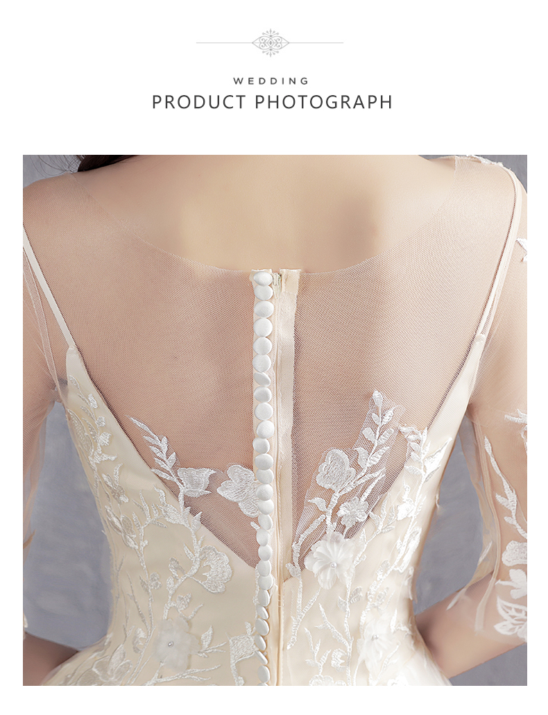 ウェディングドレスはとても綺麗です。このデザインが好きです。中にはストラップがあります。短いドレンは大きいドレンの重みがなく、ウェディングベールは軽くて、着心地がいいです。