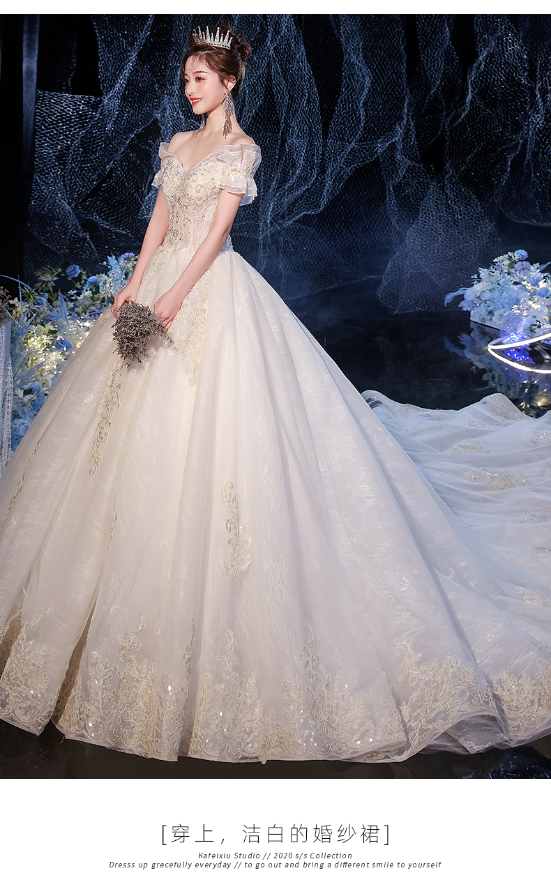 超高級オーダーメイドモデルTIKTOKが結婚式を挙げた2020新型オーフスタンドレン上品シリム新婦の結婚ドレスナチ