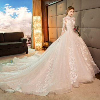 主なウェディングドレス2020秋冬新婦結婚詰め襟長袖プリンセス夢まぼろし仙女范長のトーレ女トーレモデルM