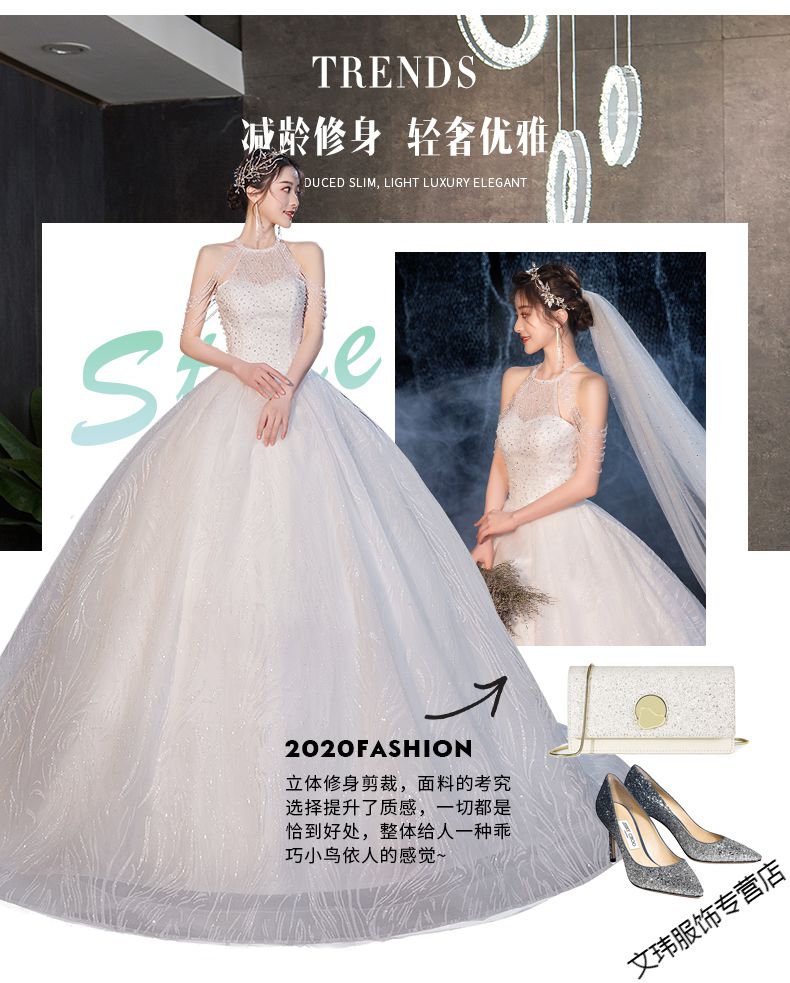 富貴鳥ブランドのオフィシャル店主ウェディングドレス2020新商品大ドレン新婦ドレスヌーチわ夢幻の星空TIKTOK NET有名人ウェディングドレストン款+8点セットM
