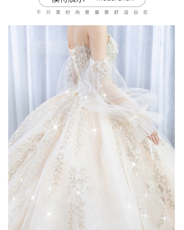 ウェディングドレスのデザインは斬新で、細工が行き届いています。質感は柔軟で繊細です。