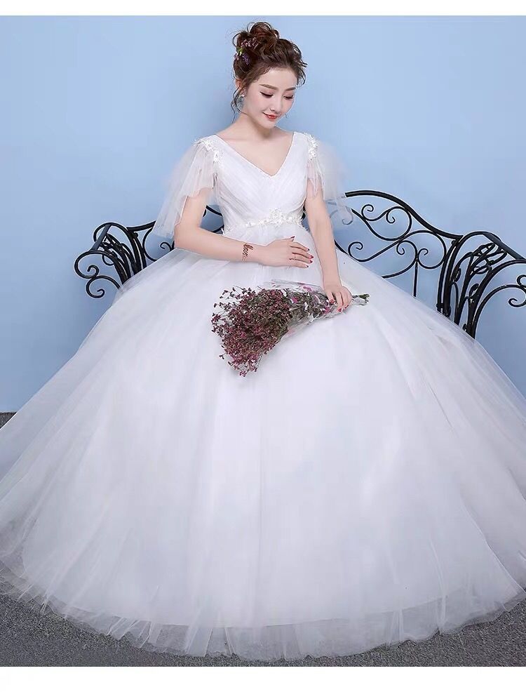 ウェディングベール2020新型妊娠新婦の高腰妊婦の双肩コリアスタ宮廷外出紗XL白