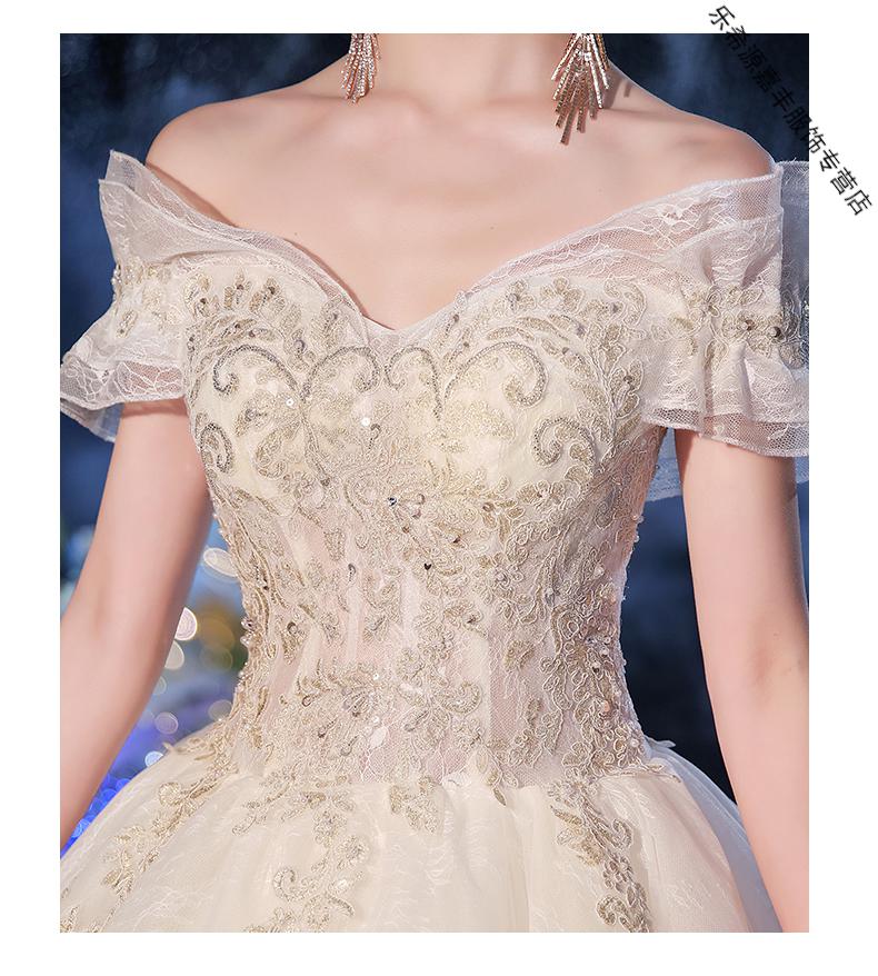 喜斯特軽奢高级オフューダメインウェディングドレス2020新妇ドレス长いドレンTIKTOK豪华仙秋浅シャンパン色ドレンL