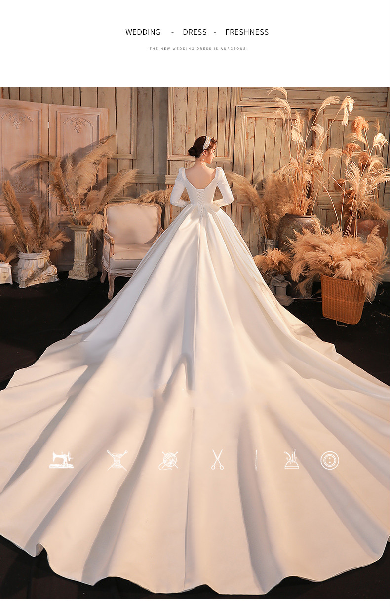 南糖三色フレンチーサテン長袖主ウエディングドレス2020新型秋冬新婦ベストドレン大気ストレームカバー太い腕ローリングS