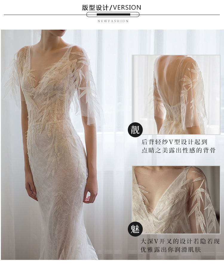 ナチェル軽やかなウジェイディードドレズ女ふわ夢幻ドレストレストストストレイマンメード洋風シンドハーバールヘボントレトレイン結婚ドレス2020年秋季ベージュS
