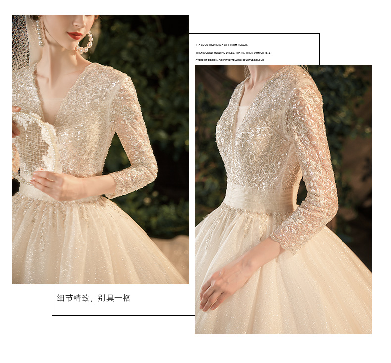 南糖三色フルチ主なウェディングドレスの新商品です。軽ハイエンド星空長袖ナチル仙夢幻トレインモデルM