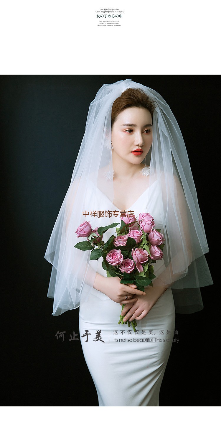 2019新婦の結婚紗の二階旅撮影短い白い網の糸の百組は肉を遮ります。