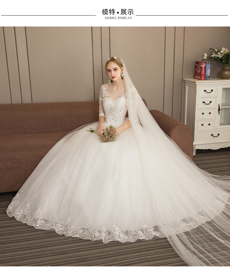 TIKTOKの爆発モデルウェルディ・チェンドレス2018年秋冬新婦の結婚式の双肩Vネックローグリム妊婦の中袖ウェディングドレスの女性高腰妊婦のウェディングドレス+3点セットでXLを大きくします。