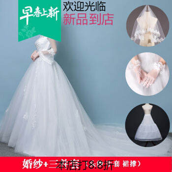TIKTOK爆款ウェディングドレス2018新型アウトレットウェディングドレス+グローブトップドレス白XXL