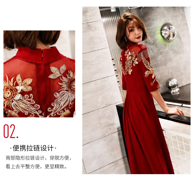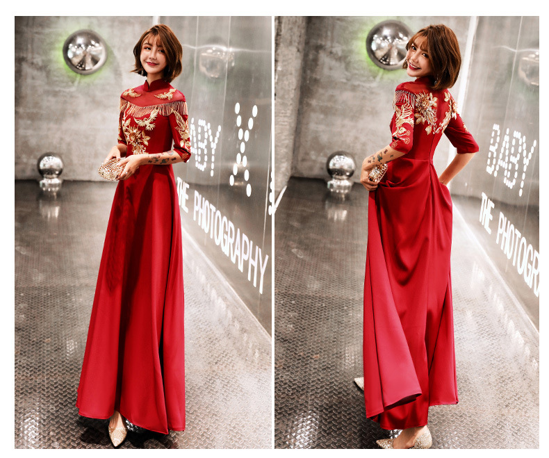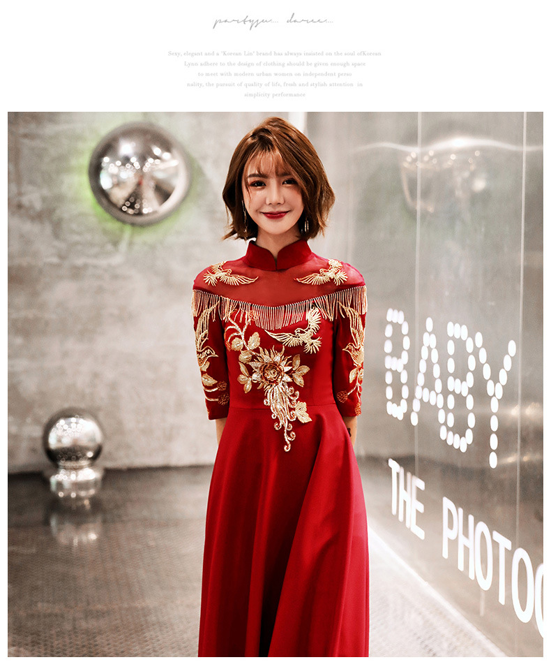 春季の夏のブランドの直営乾杯の時間はドレスの新型の端正で典雅で上品な妊婦の新婦の結婚します秋冬のチャイナドレスの中華風の長袖のモデルの古代のワインの赤色S。