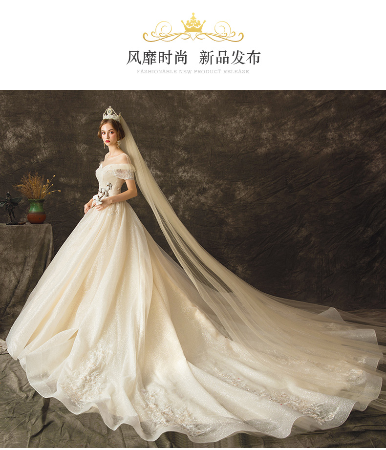 MENGYUAN星空ウェルディ・レングス新婦ドレンプリンセスドリーム2019新主なウェディングベールの女性ネット有名人と同じスピリットライトシャンパンのドレンXL