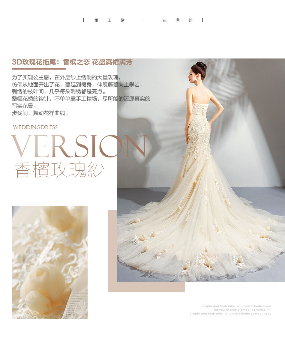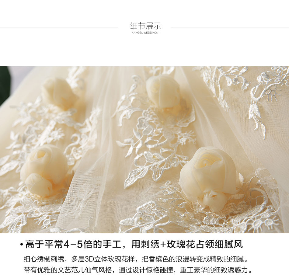 ロマンチックな童話の王女バラのトレイン新婦ウェルディー5602ライトシャンパンS