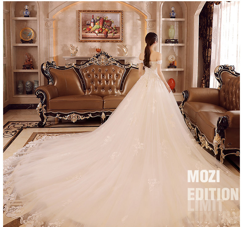 mozi Long水晶ウェディングドレスの新婦ドレース2019新型上品ドレン王女の夢幻セクシーオーフショルダービスト結婚ローリングスカートローリングXL