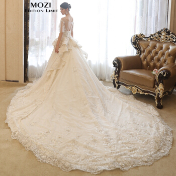 mozi长いドレンウェルディ2019新型洋風新婦結婚オフショルダー宮廷王女ナチャラム婚礼上品紗スカートトニーモデルXL