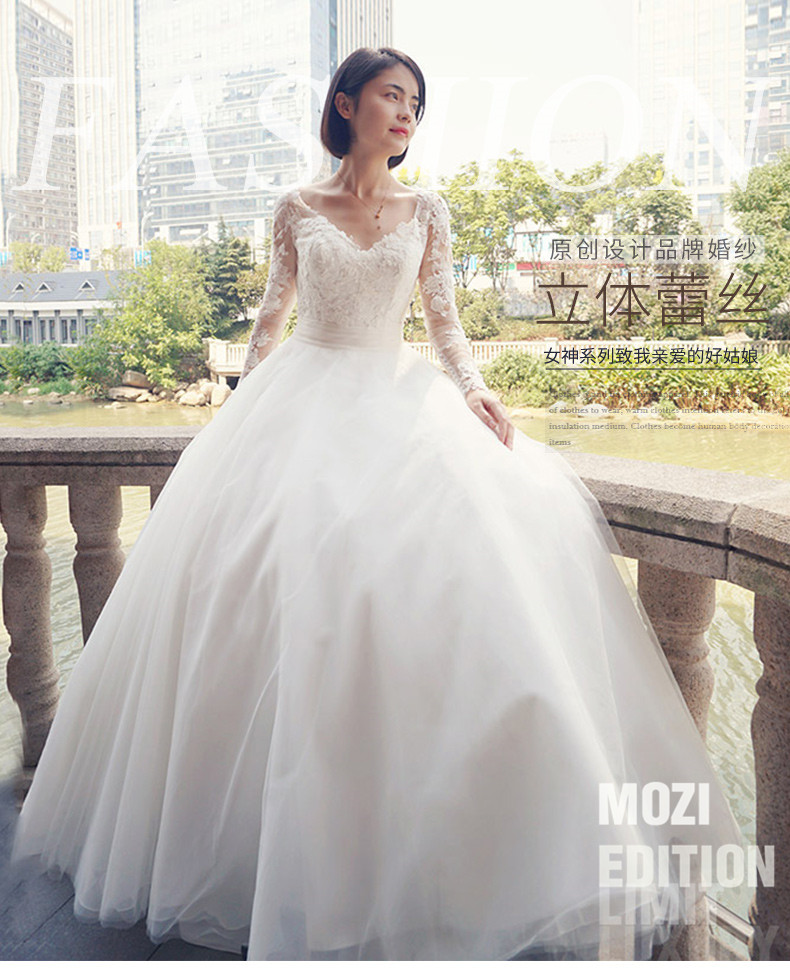 moziホワイトウェルディー2019新型コリアスタ新婦結婚長袖レレスファッションシンプロファッションモデルS