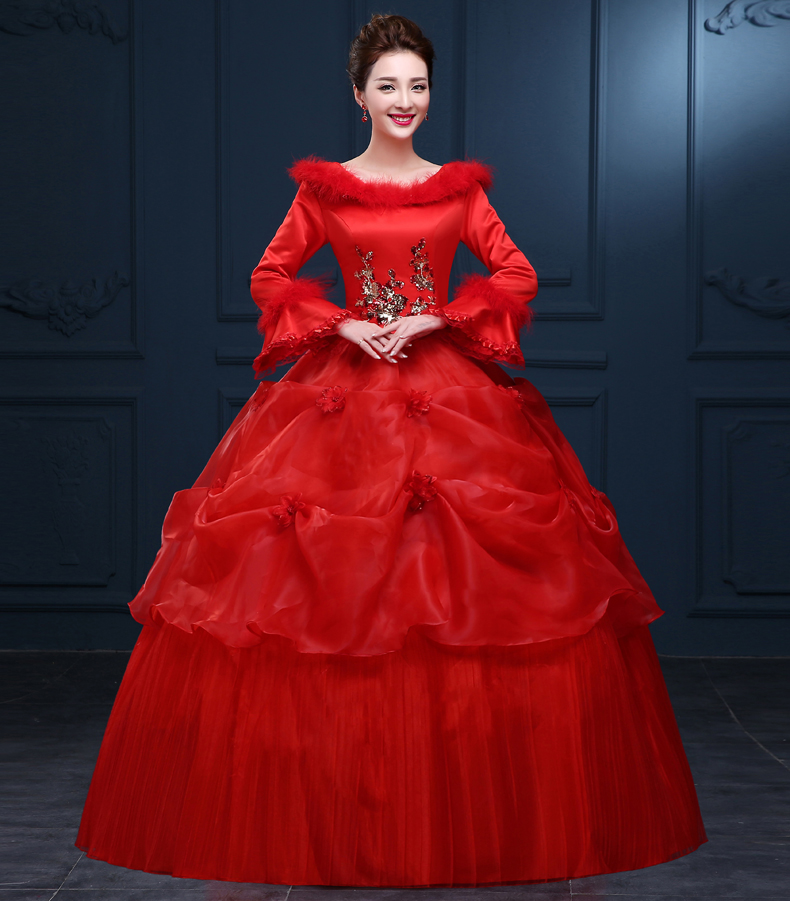 冬のウェディングベールウェディングドレスウェディングドレスウェディングドレスウェルディー冬のジッパー赤いネックレスとクラウン+3点セットXL