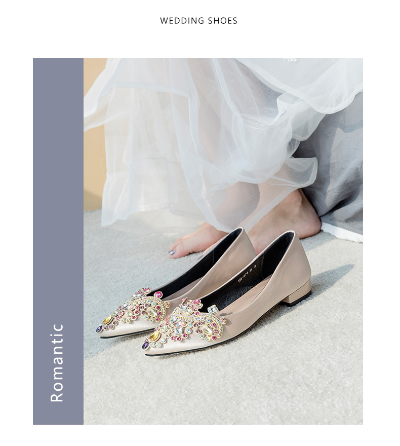 ダイヤモンド婚靴女性用フラット2018新型快適平は、妊婦のウェディング靴の新婦と結婚して履く靴の花嫁シャンパン色(2 cm)33