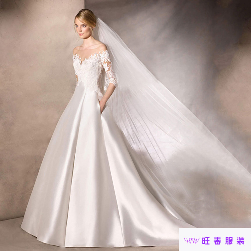 【年末9折巨大恵】ウェルディ・ドレース2019新型宮廷ドレン・ストーンのサテン面オーフ・ショルダーのハーバーンウエディングTIKTOK同じる白いS