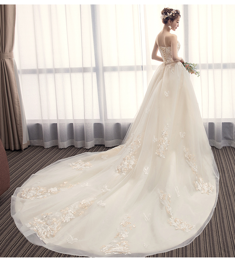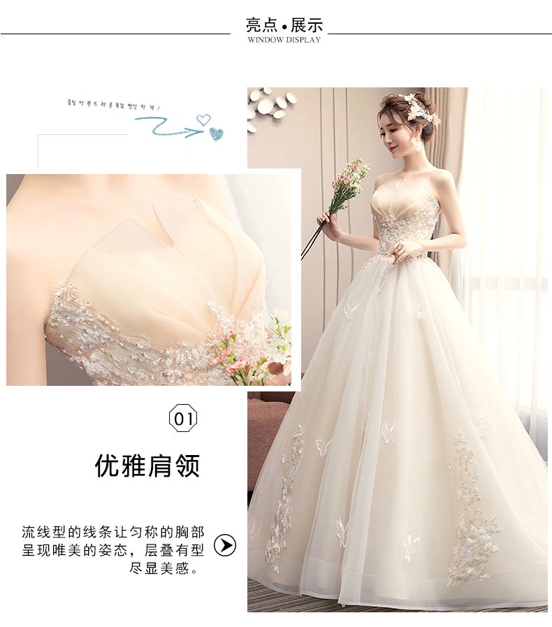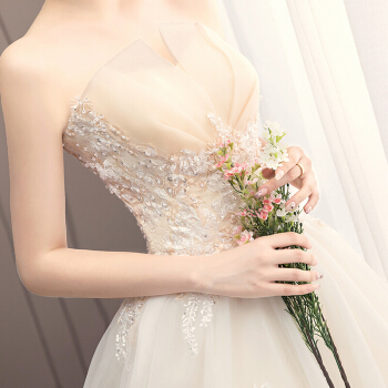 新商品のウェルディーディードレス女2018新型シャンパン色のプリンセスドリームナチェル長のライト星空出かければシャンパン色ドレンウェディングドレスM