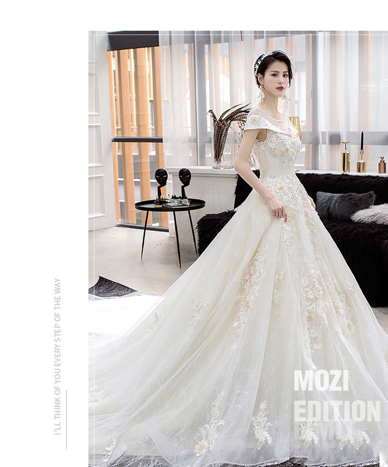mozi主なウェディングドレスの新婦ドレース2019新型セクシーオフスタン·コリアスタスタ上品トレイン·ハーバーン·ウェディングドレスのスカートドレンモデルM