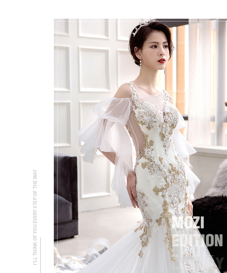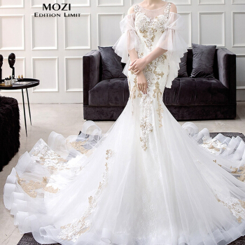 mozimメードのウェディングドレスの結婚ドレースの新型2019洋風セクシー宮廷の新婦の上品な腰のストリムの短いドレインイン夢幻公メーンウェルディングディングドレスのマイドスタイルS