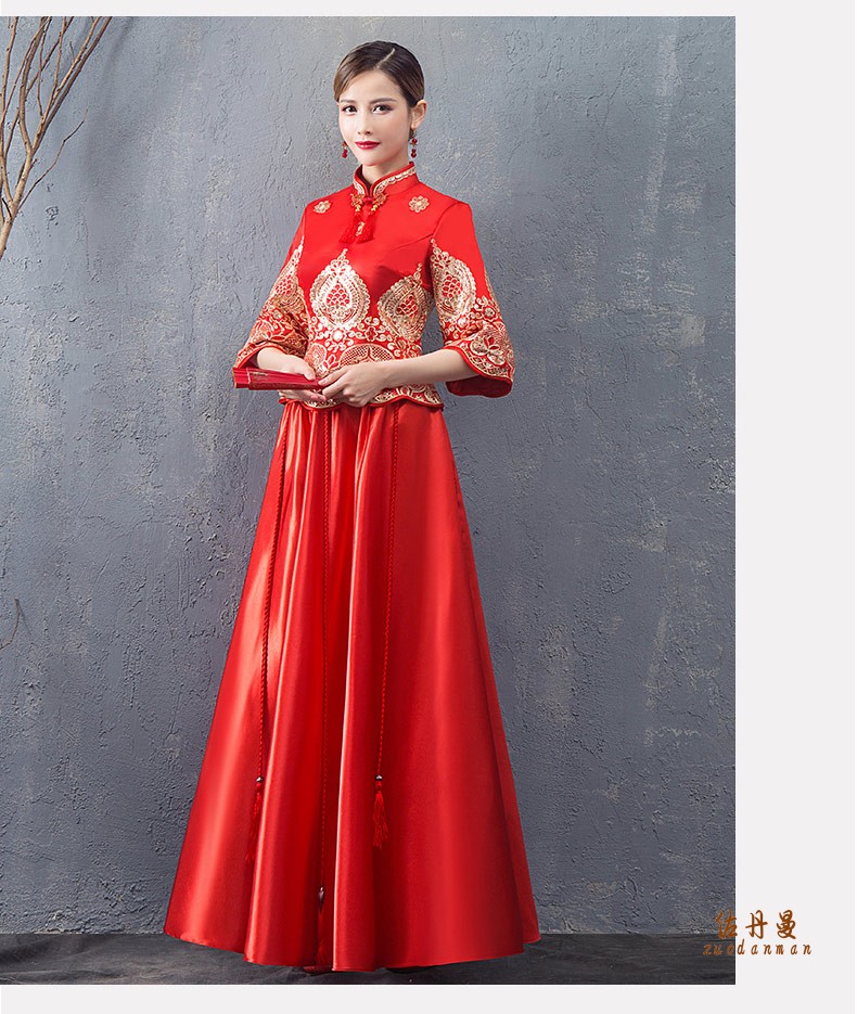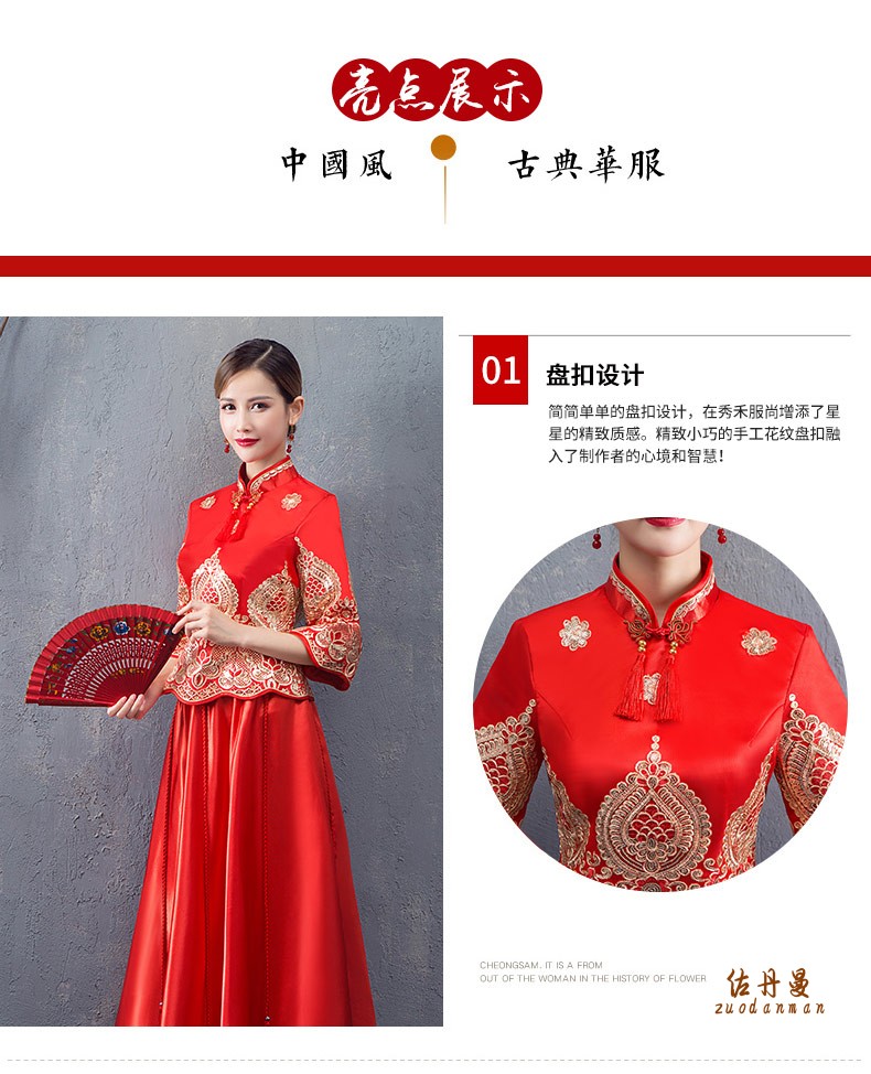 佐丹曼秀禾服新婦2018新式古代ウェディングベール鳳冠霞_結婚時代の嫁入り服の出閣の半袖夏の薄い新婦の赤XL