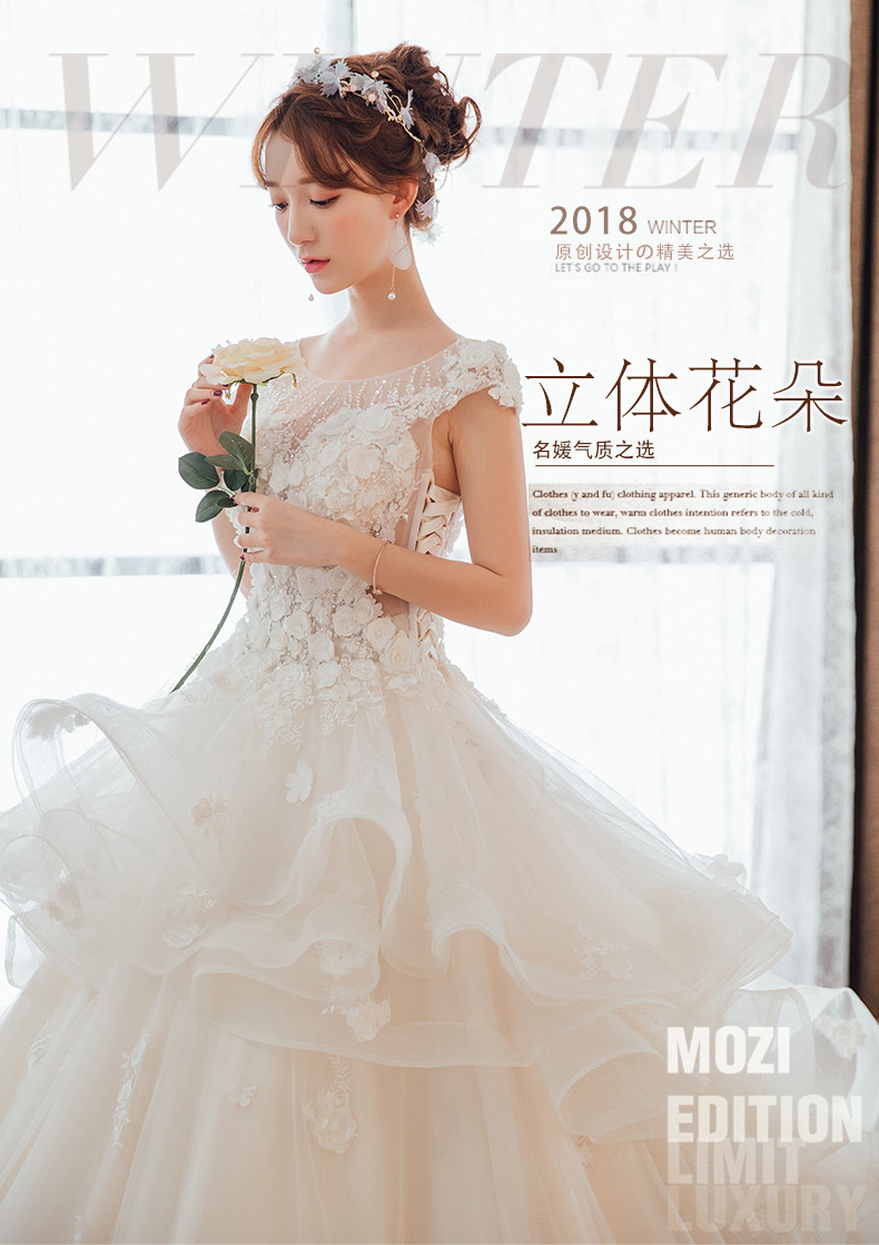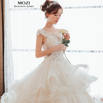 mozi浅黄色ウェルディティーンドレース2019新型新婦の結婚高級品オーフショルダーのドレイン王女ドリーム妊娠中のウェディングドレスのスカートローリングモデルS