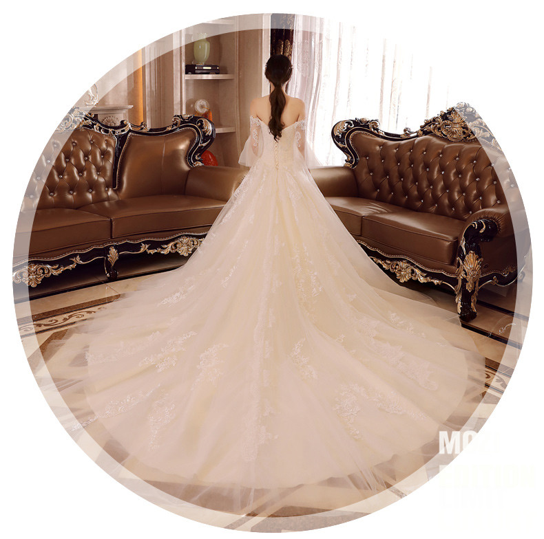 moziオリフュージョンウェディング結婚式ドレス新婦2019新型スリム長のドレインイン宮廷優雅姫夢まぼろし腕結婚高級品紗スカートローリングモデルXL