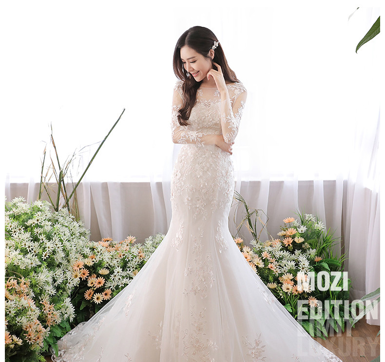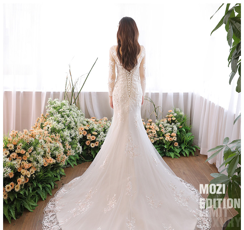 mozi长袖マイドウェディングドレスワンピース2019新型プリンセスドリームスイムをウエストにした新婦ドレスっていう子のナチトレンのウェディングベールのスカートマイドがウエストウェディングベールXLを収めます。