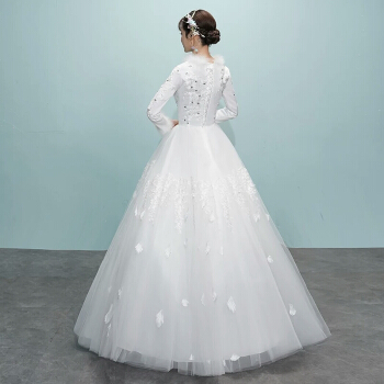 Yishafeinaウエディングス2019新型新婦結婚秋冬長袖保温厚い手冬白姫冬スカート女性白S