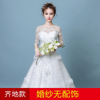 新商品のウェルディは、新商品の2018プリンセス春のアウトラインで、袖が長いドレン新婦の軽ナチーラ宮廷ローグのウェディングドレス+3点セットの白色M