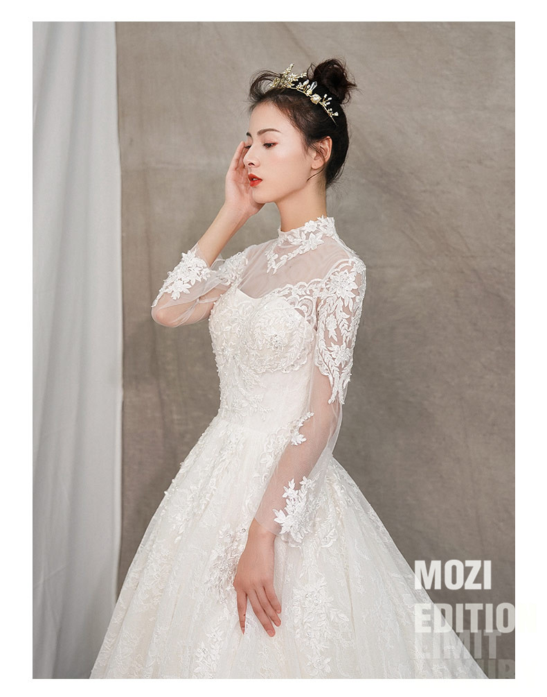 mozi新婦の結婚式の主なウェディングベール2019新式保守女史ちびっこロリストリーム長袖ドレンハーバーン風秋冬型ウェディングベールのスカートローリングモデルL