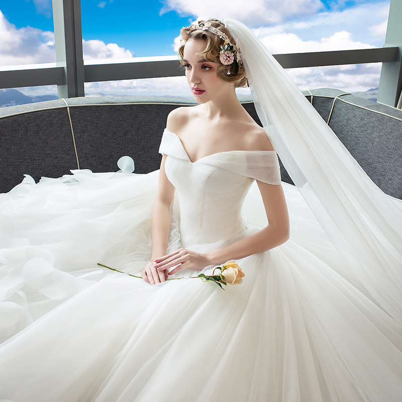 ウェルディドレース新婦2018新型オーフドール·コリアスタスタスタスタ·シリムプリンセス夢幻ロングー長いトレインモデル-天女花金XL