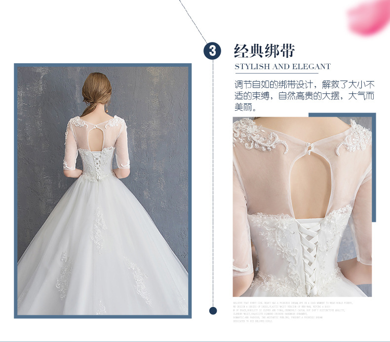 【春夏上新】長いドレン主ウェルディー2018新型新婦結婚洋風ストV襟花女オフルドール長袖ホワイトドレンウエディングドレスにアクセサリーS 3点セット
