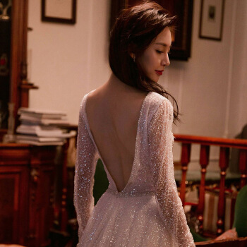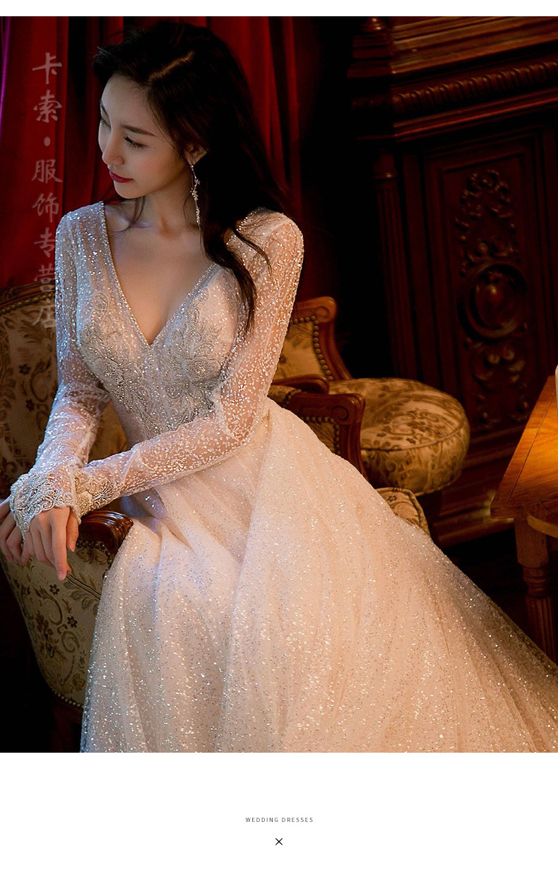 古莱登(GODLIKE)v领婚式轻やかなウーウェルディ、新しいタイプのロングトレス2019新型ロングトニープリンセスドリーム宮廷シンプV襟长袖新婦外出纱女ロングー+モデル同じス帽子ケープM