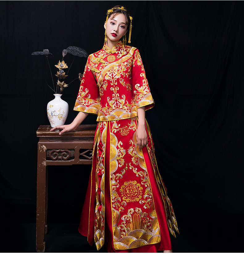 【春夏上新】新婦2018新式結婚中華風ウェルディー古代嫁入り祝い服結婚服出閣秀和服吉祥+四点セットXL