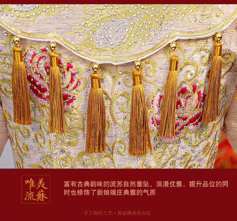 【春夏の上で新しい】中華風の結婚式2018新型の赤色の薄い結婚服の女性新婦の中国風のチャイナドレスの嫁入り服の乾杯の時間はドレス9の翻る赤色を使ってドリルのXLをプラスします。