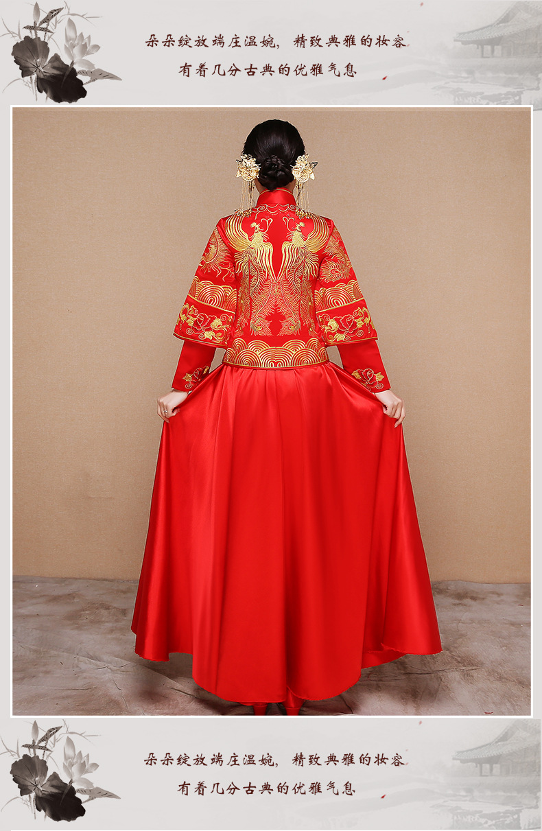 秀禾服の新婦の乾杯の時間はドレス中華風ドレスムスの結婚式で大好きなサズの妊婦の結婚式の服装は竜鳳の衣ショーの着物の緞子群の七分袖Sです。