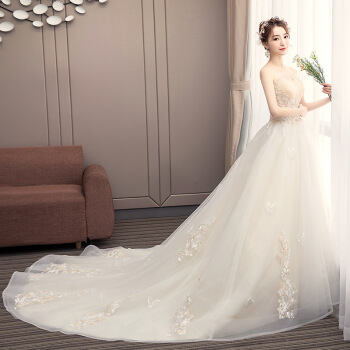 プリンセスドリームロングのトーレ女2018新型シャンパン色のプリンセスドリームナチェル長のドレイン星空出かければシャンパン色ドレンウェディングドレスM