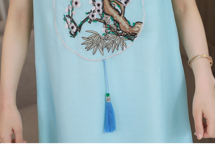 2019夏の新型婦人服コリアスタノ個性百合純色の淑女の中でロングースのウェディングドレス/チャイナドレス/ドレスの甘い青緑色M