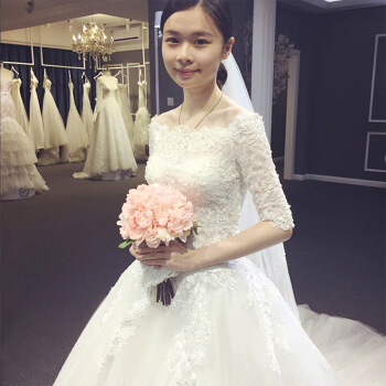 ウェディングドレス2019新型ドレン王女ドリームニューレディーオーフダッドウェディングドレス洋風ローリング軽やかなウェルディーディーディー・ドレール白半袖ローリング+7点セットS(立体裁断)