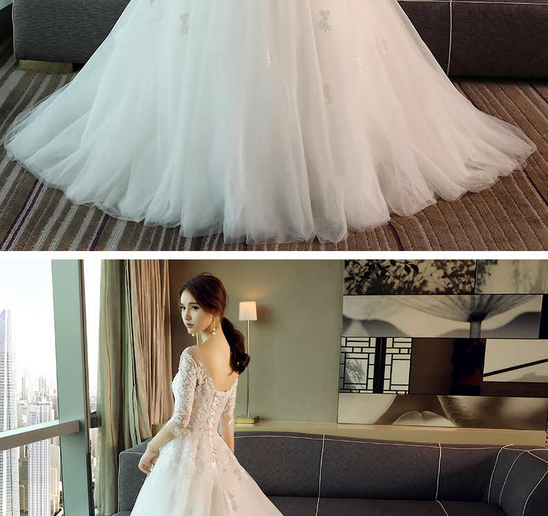 ウェルディディドレース2018新型コリアスタ新婦結婚オフシショルダー長袖レストーレンストーム夏女紐で结ぶドレンウエディングL