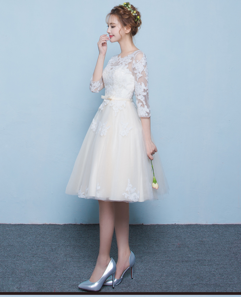 シャンパン色のドレス女コリアのパーティーの夜ドレスアップ2018年卒业年会短款中袖紐でシャンパン色を身につけてオーダーメードします。