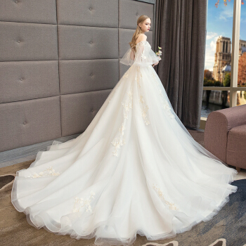 オフシド妊婦ドレン結婚式2018新型新婦結婚ドレス大き目のサイズ高腰遮妊娠胃TIKTOK同じス高腰ドレン送四点セットM